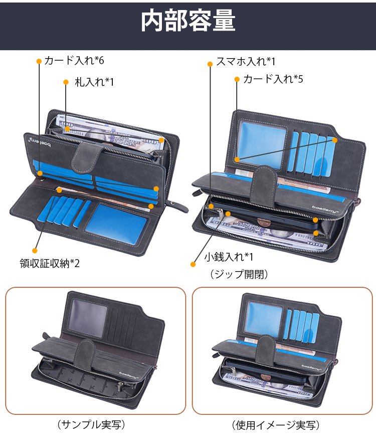 メンズレザー製多機能大容量長財布