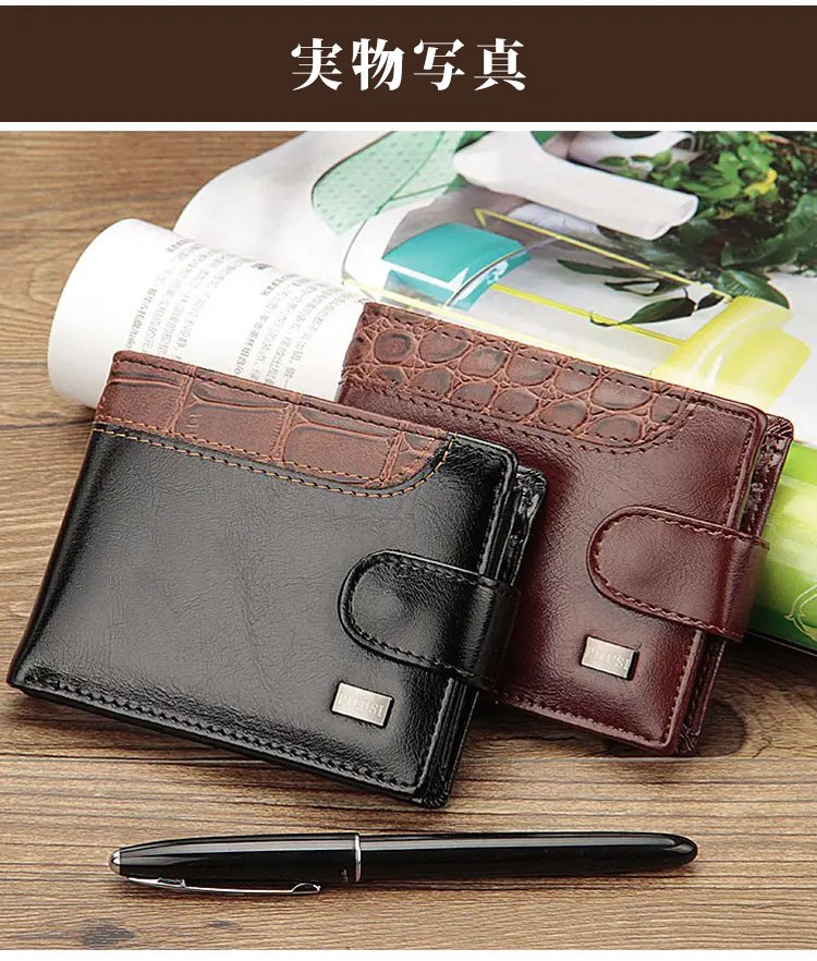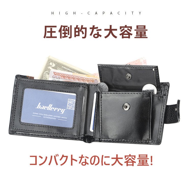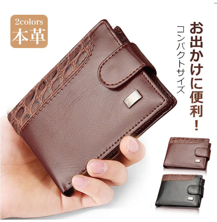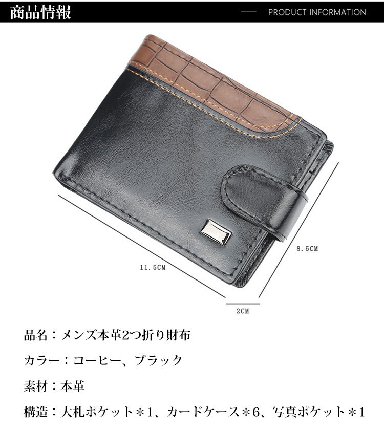 【メンズ本革2つ折り財布】本革、撥水性、傷に強い、大容量